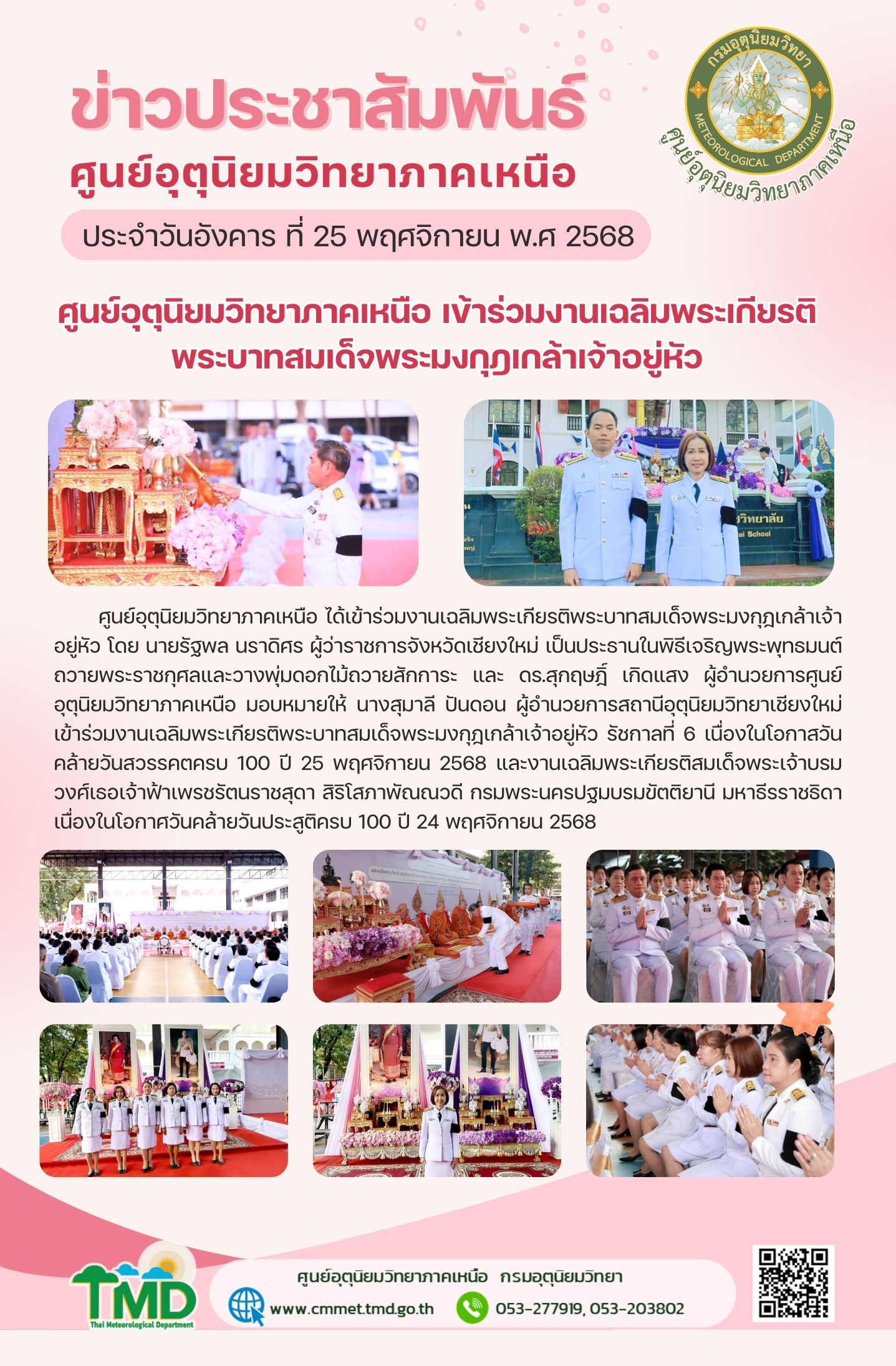 ข่าวประชาสัมพันธ์กิจกรรมศูนย์อุตุนิยมวิทยาภาคเหนือ ย้อนหลัง >>> Click Here |