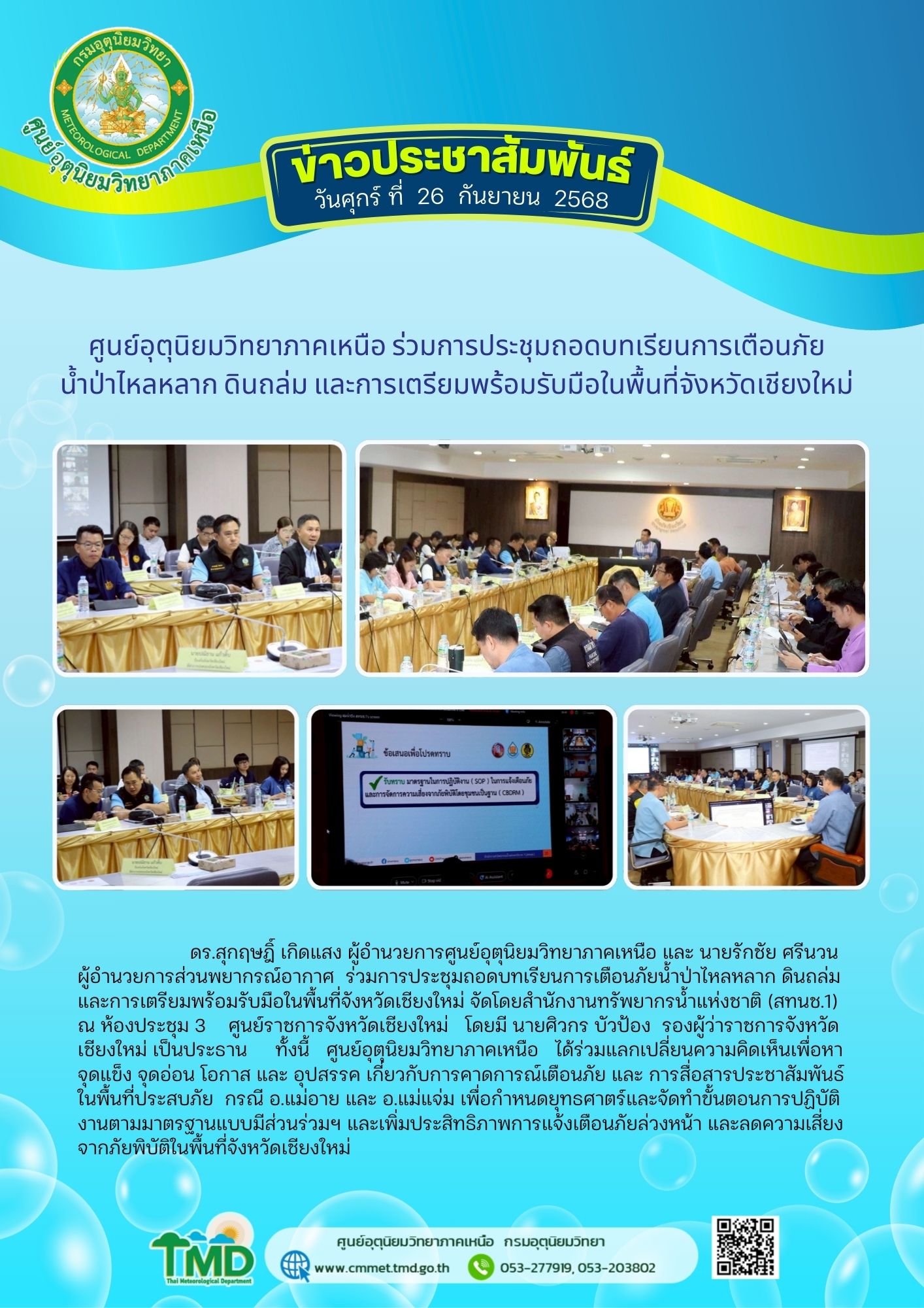 ข่าวประชาสัมพันธ์กิจกรรมศูนย์อุตุนิยมวิทยาภาคเหนือ ย้อนหลัง >>> Click Here |