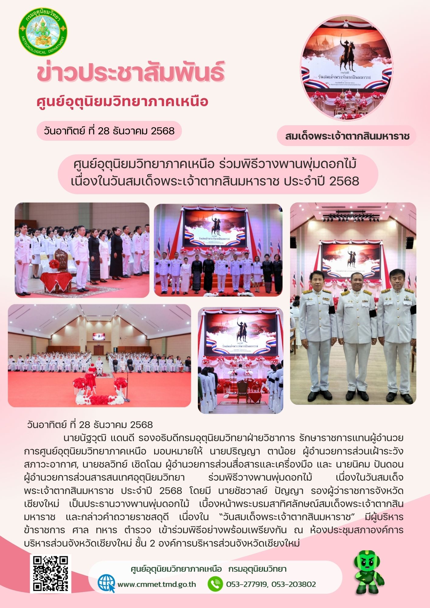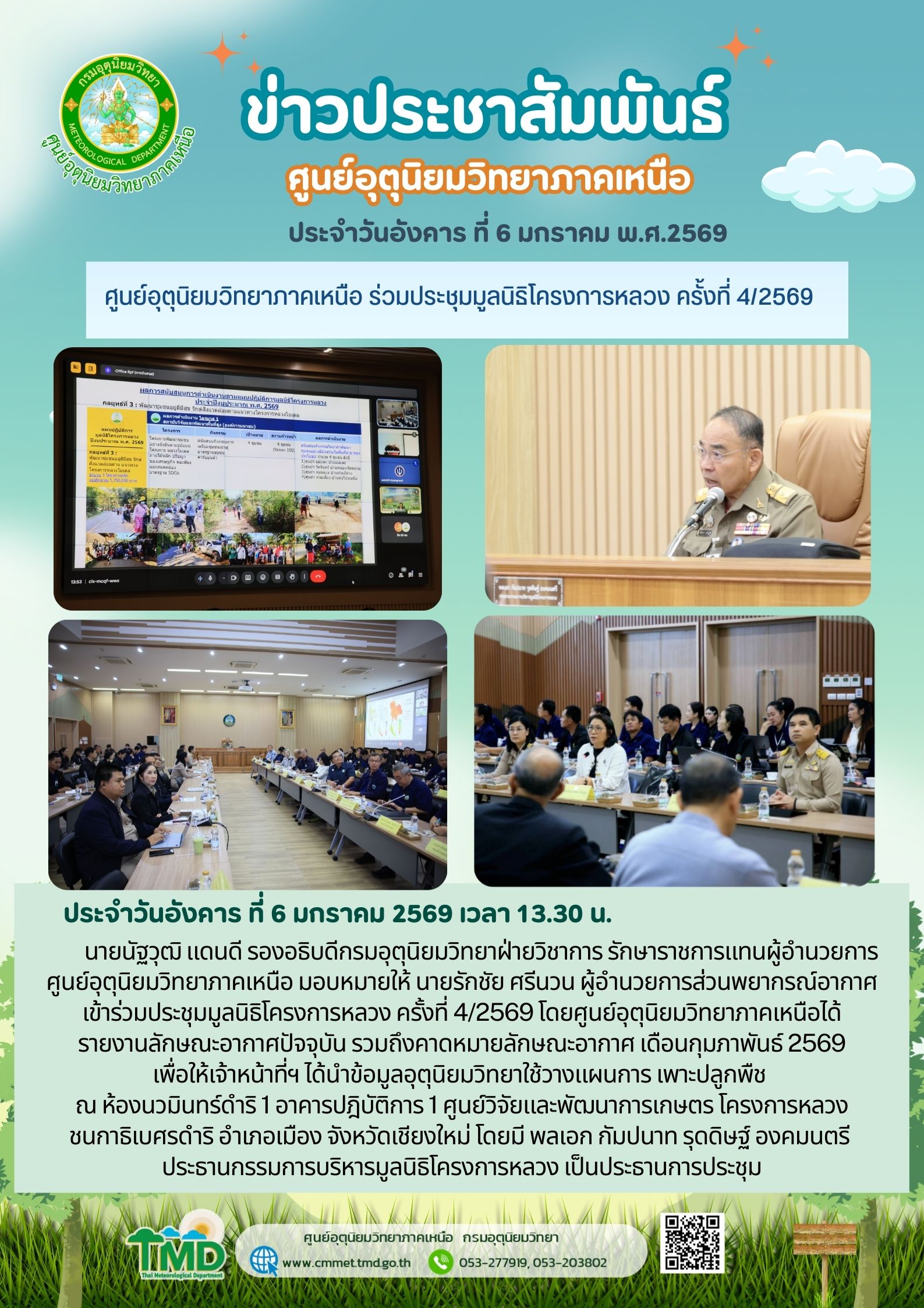 ติดต่อขอข้อมูลด้านอุตุนิยมวิทยา : pt@metnet.tmd.go.th, pt48327@gmail.com โทร. 0-5320-3802