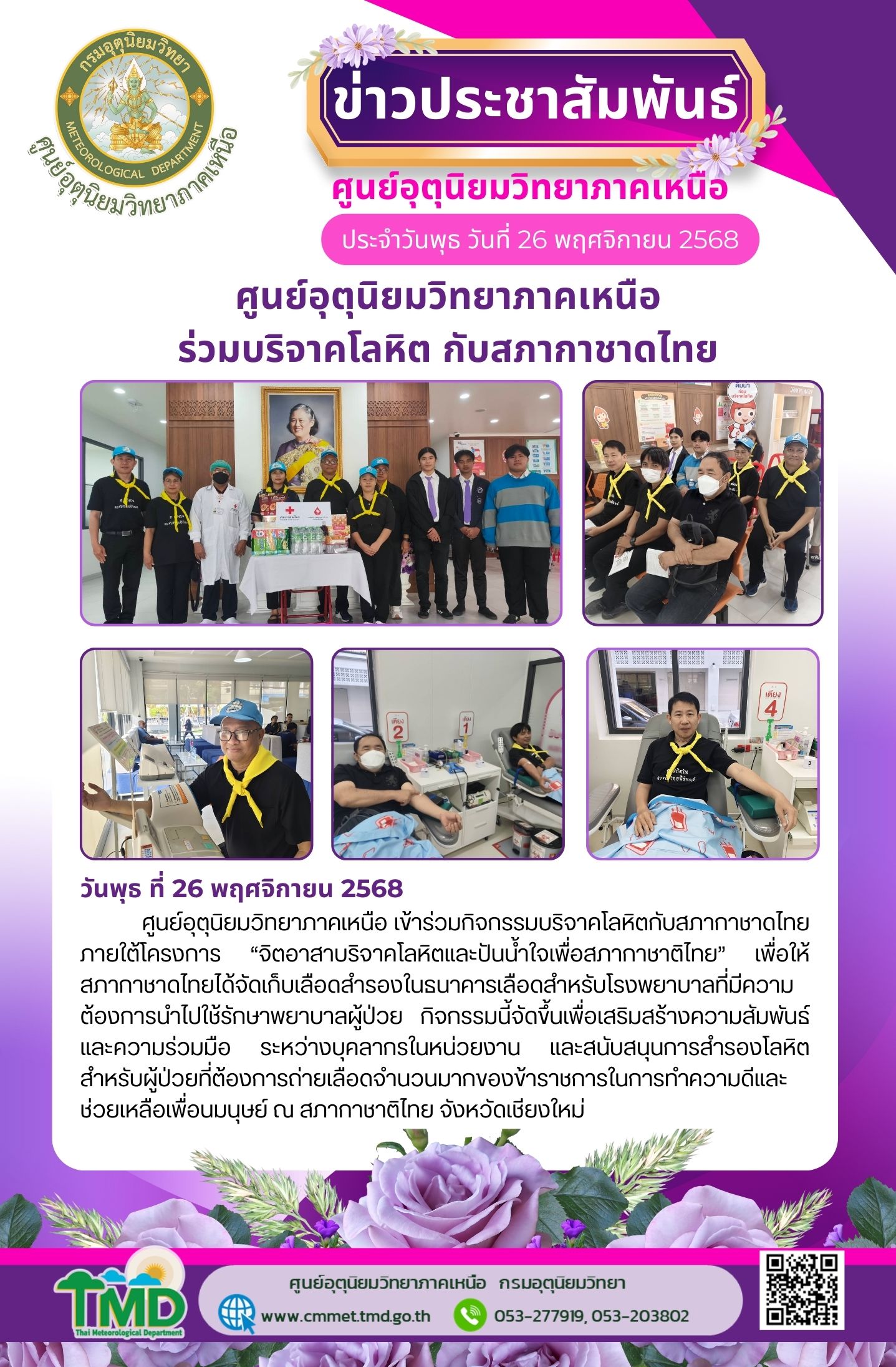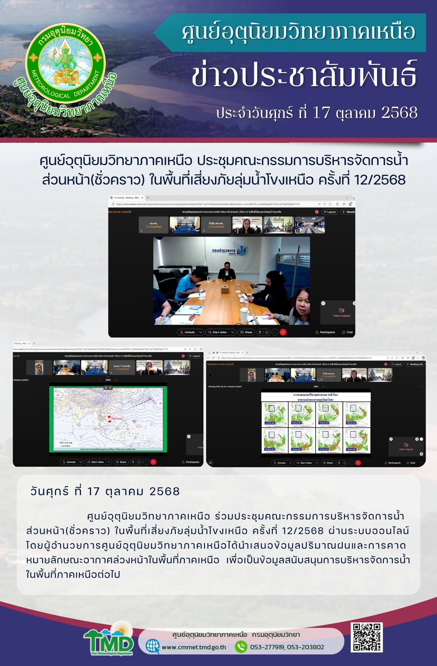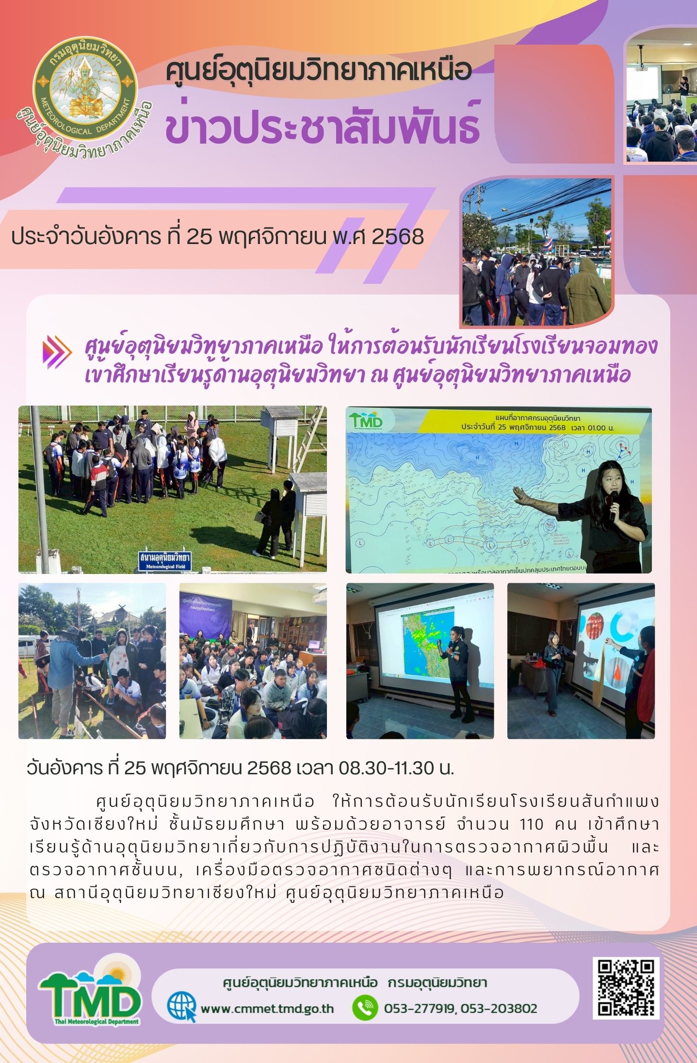 ข่าวประชาสัมพันธ์กิจกรรมศูนย์อุตุนิยมวิทยาภาคเหนือ ย้อนหลัง >>> Click Here |